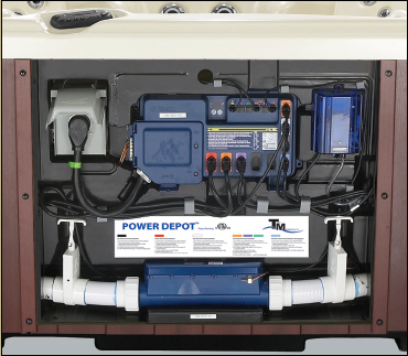 The award winning 'Power Depot from 'Gecko'. A modular one peice panel that houses all spa components with plug n' play push fit connections. Simplfying the service/maintenance process reducing costs and time, both in manufacture and the domestic environment.